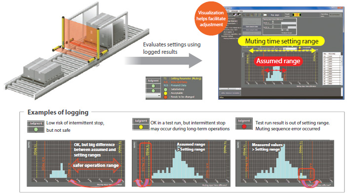 The Configuration Tool SD Manager2 visualizes the installation positions and settings by logging the muting sensor operating conditions of the F3SG-R. It helps ensure reliable, first-time-right configuration.